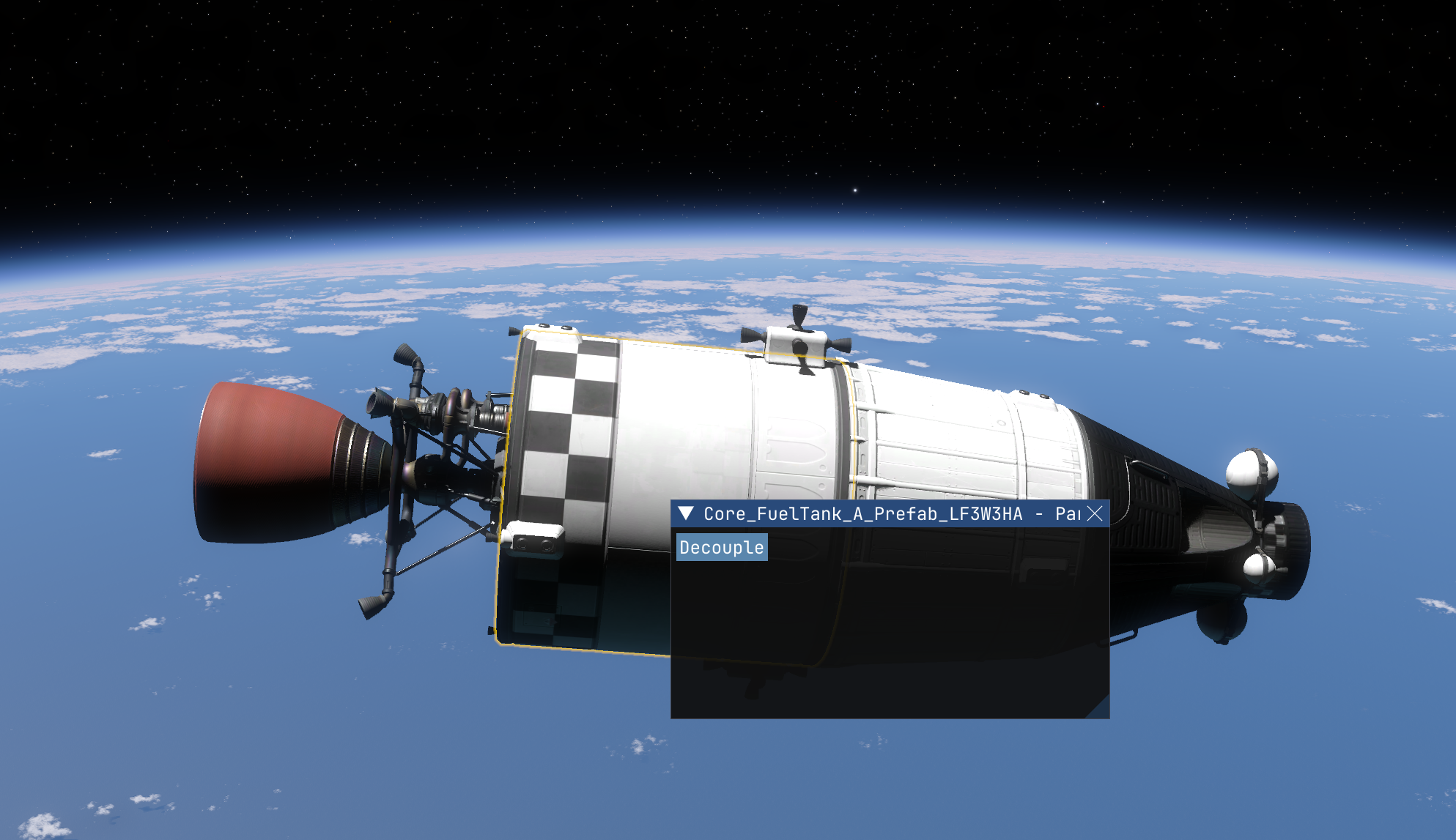 Please note however, that if you grab a build with this functionality in it though, beware, if you decouple parts that have no mass defined (and there are still quite a lot of them that do not have that defined yet) you will crash the game. This is all just part of the ongoing development and eventually won't be an issue.